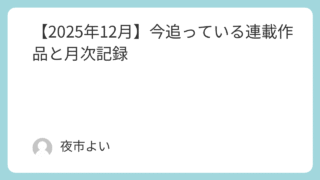 書籍 七沢またりシリーズ既刊全書籍一気読み完遂したのでネタバレ有り感想記事 2か月前の50%オフ七沢またりフェアで全巻揃えていて、一気に読んで世界観に浸る良い機会だったのでこの1週間で最新刊まで完読しました。web版既読者勢で特に死神を食べた少女は10年強で5周はしているのですが、一気読み宣言した訳ではないので途中... 2025.10.27 0 書籍