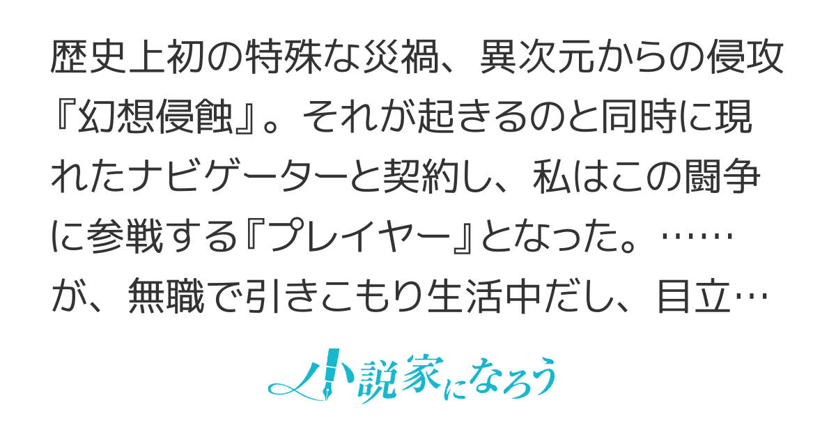 歴史上初の特殊な災禍、異次元からの侵攻『幻想侵蝕』。それが起きるのと同時に現れたナビゲーターと契約し、私はこの闘争に参戦する『プレイヤー』となった。……が、無職で引きこもり生活中だし、目立たずひっそり単騎でダンジョン探索を楽しもうと思う。 *** 「なんか面白そうだし、ちょっと遊んでみるか」という、ノリ軽く割り切り早く、あまり深く考えない『私』の自由気ままな探索と日常生活。……と、その裏側にあるもの。 *** 主人公(ちょっとメンタル壊れ気味)はガチでソロプレイヤー(ステルス系スナイパー)。