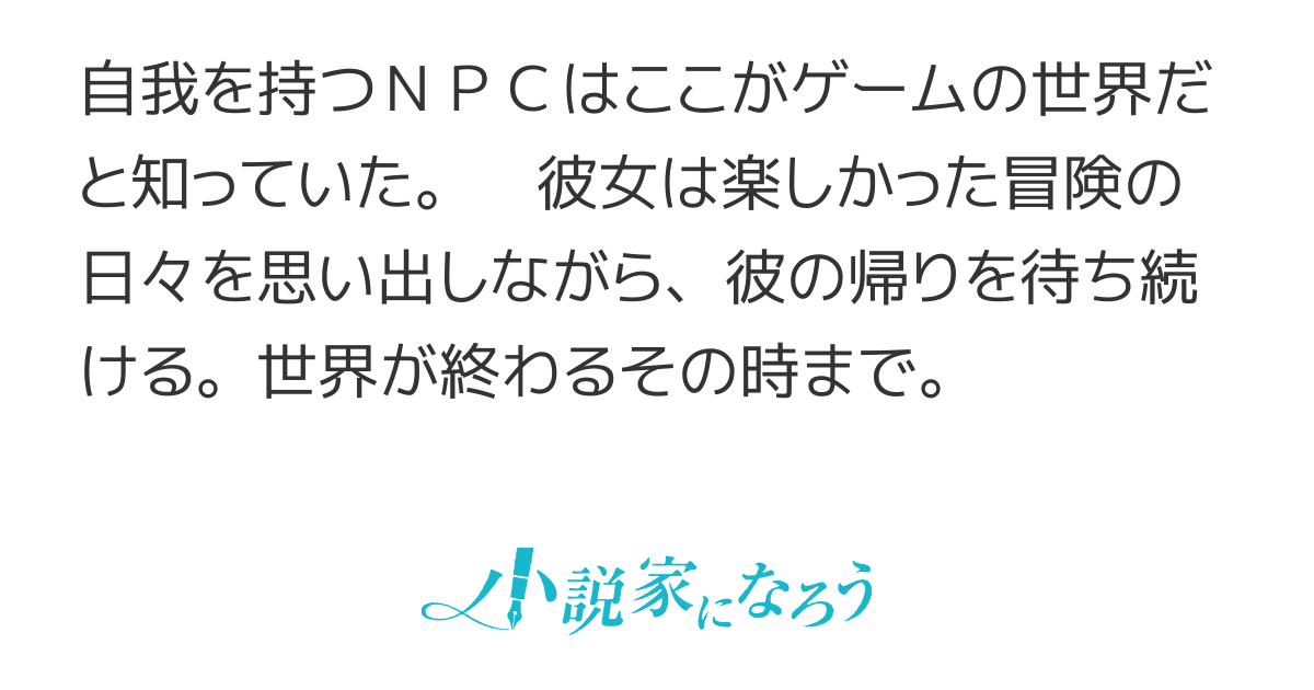 遂に終わりが来たMMOでNPCは最後に何を祈る「NPCは終わる世界であなたを待つ」