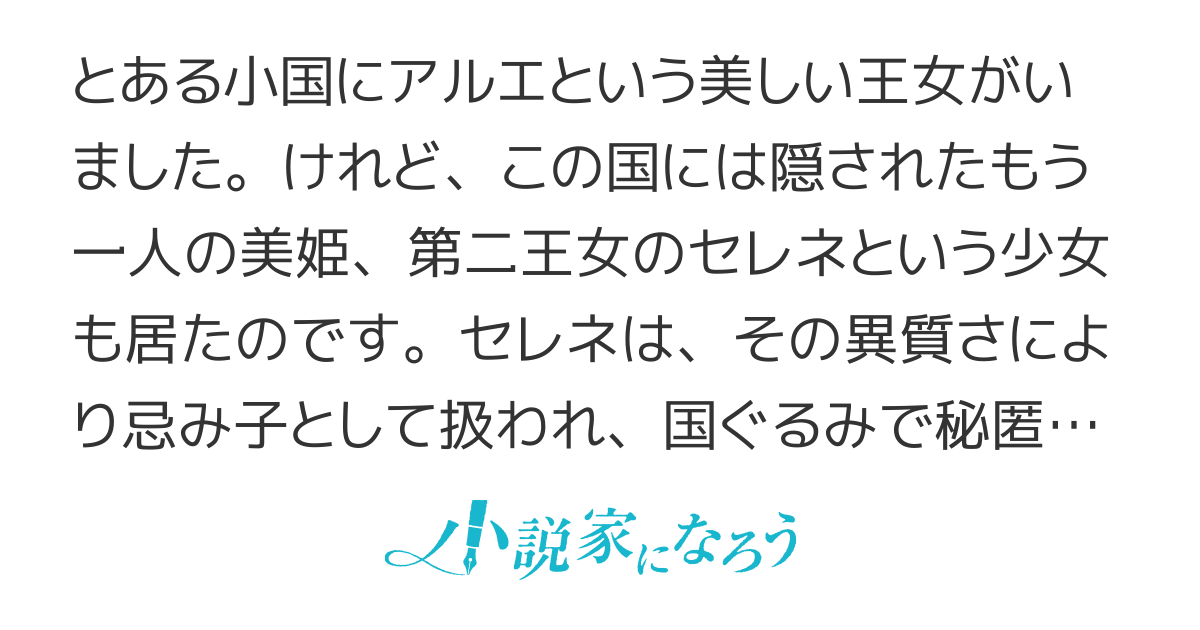 とある小国にアルエという美しい王女がいました。けれど、この国には隠されたもう一人の美姫、第二王女のセレネという少女も居たのです。セレネは、その異質さにより忌み子として扱われ、国ぐるみで秘匿され、暗い部屋でひっそりと命を繋いでいました。でも、セレネには誰も知らないもっと大きな秘密がありました。セレネの中身は、おっさんだったのです……