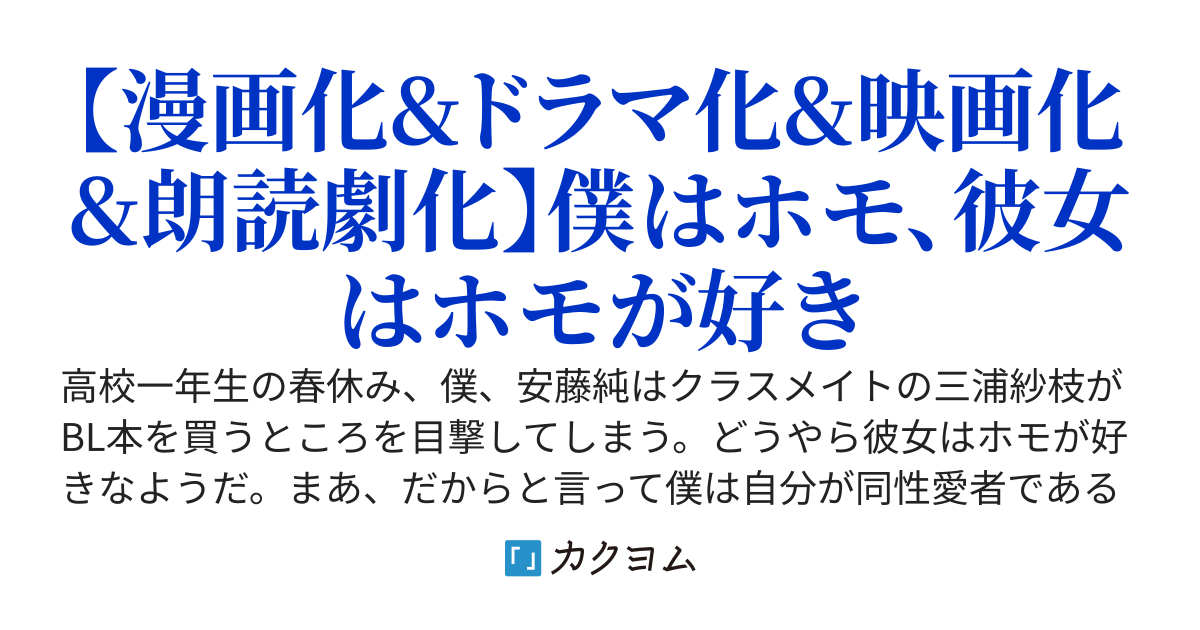高校一年生の春休み、僕、安藤純はクラスメイトの三浦紗枝がBL本を買うところを目撃してしまう。どうやら彼女はホモが好きなようだ。まあ、だからと言って僕は自分が同性愛者であることを彼女に明かすつもりはない。勘違いしてはいけない。彼女が好きなものはホモであって、僕ではないのだから