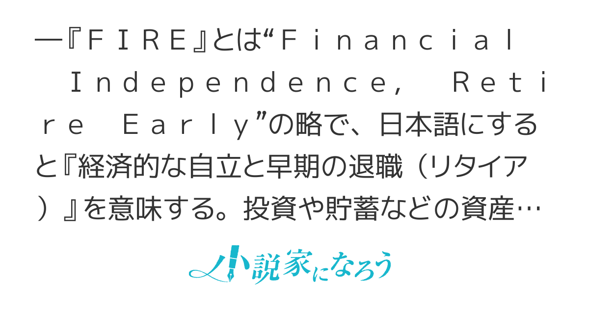 てっきりタイトルのFIREの印象から楽して金稼ぎ系の作品かと思ったら