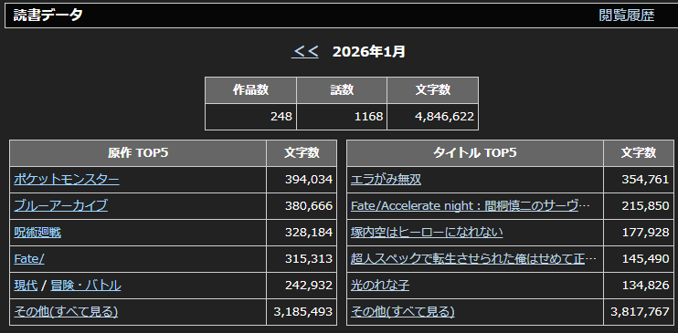 1月中に更新された長編連載作品で既に本サイトで紹介した現行作品は除外。