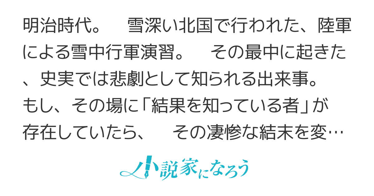 現在15話2万文字の八甲田山雪中行軍遭難事件を基にしたオリジナル長編連載作品。